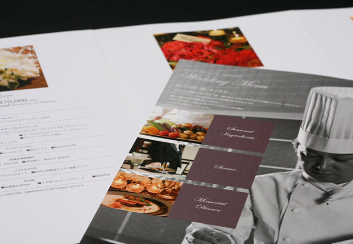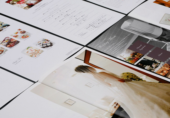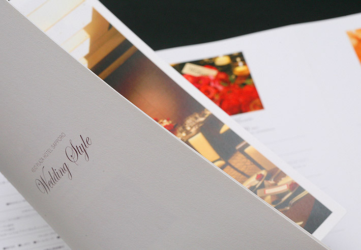 表紙をはじめ、各頁はシンプルでありながら高級感を印象づけるデザイン。京王プラザホテル札幌がテーマにする“世界でひとつの素敵なブライダルスタイル”への憧憬、おふたりのときめきや感動、ゲストの祝福や喝采が、誌面から感じられるように制作しています。